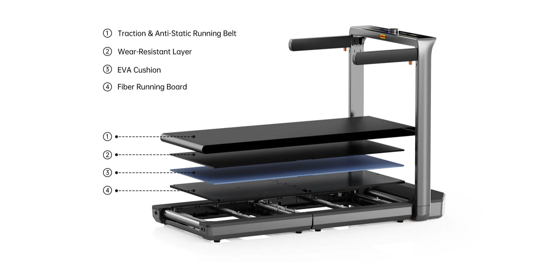 โครงสร้างสายพาน 4 ชั้นช่วยดูดซับแรงกระแทก เซฟเข่าและข้อต่อ พร้อมพื้นที่วิ่งกว้างพิเศษ (Extra-large) ให้คุณใส่เต็มสปีดได้อย่างมั่นใจและปลอดภัย